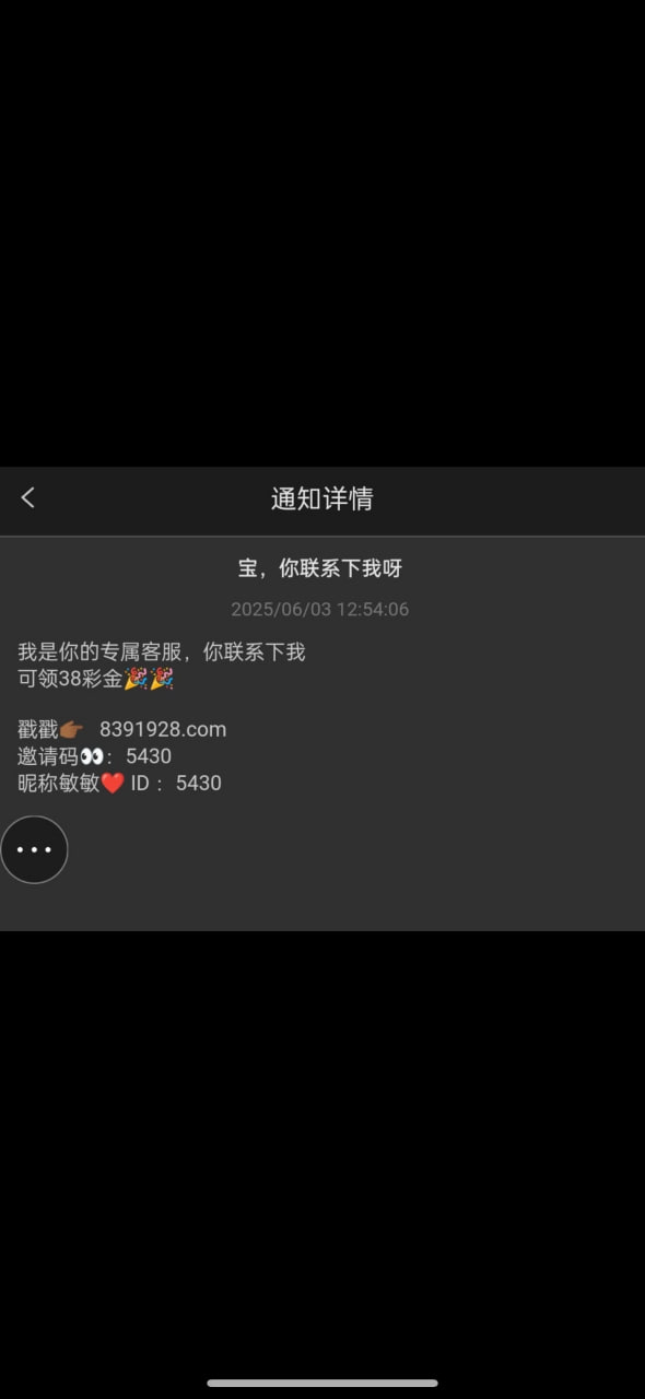 我今天上去看到的,这台天天发短信有注册过的兄弟登入上去看站内信有没有收到相同信件,有可以联系专属客服领取彩金,没有无视就会!