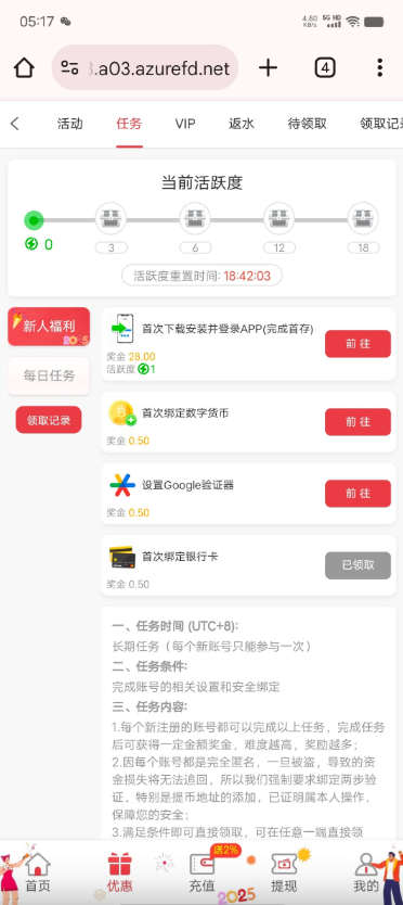 前面发过,还没有撸过的可以试试,撸过的无视 送了8块,没打出来,绑卡也有,加起来10块这样 http://255444.me