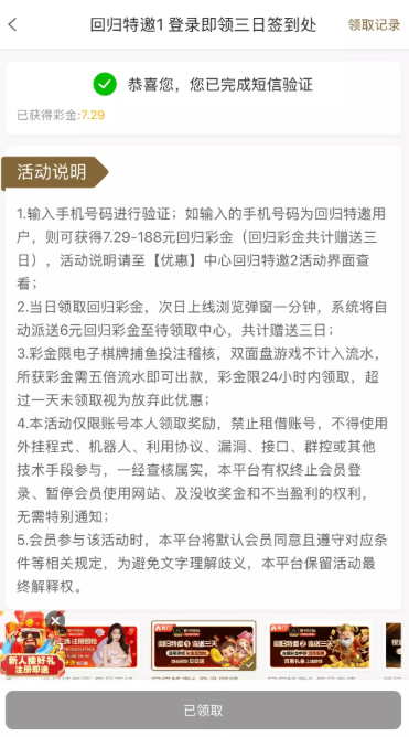 电话回归彩金 连送三天 链接 72991.com
