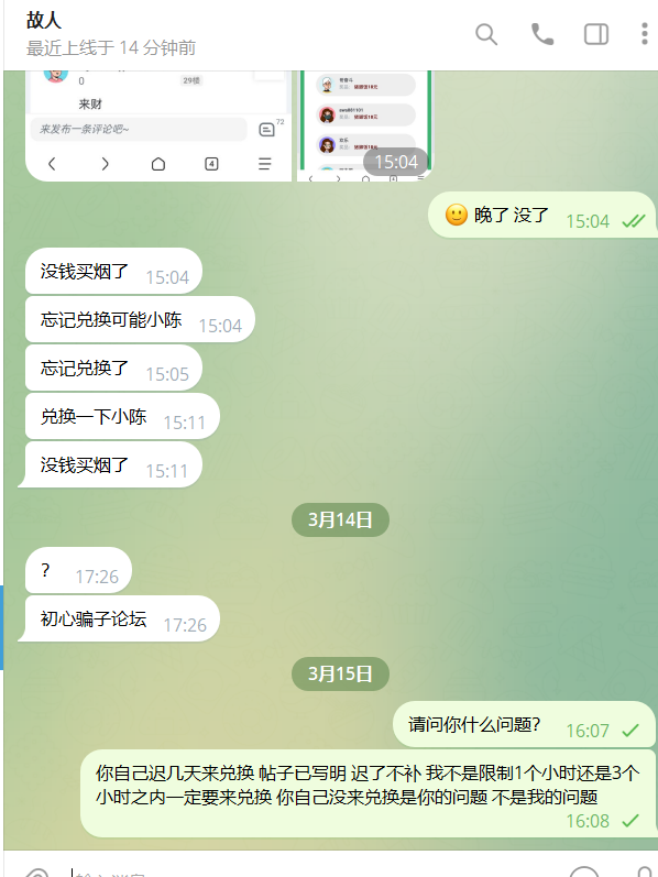 我并不像外边论坛限制你们1个小时还是3个小时之内一定要来兑换!