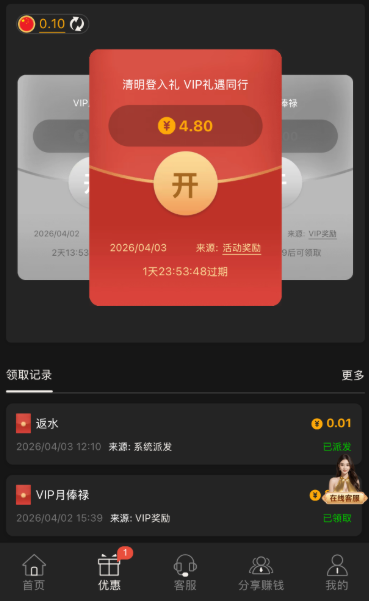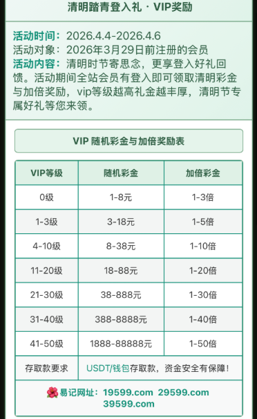 有vip的可以领取清明节彩金